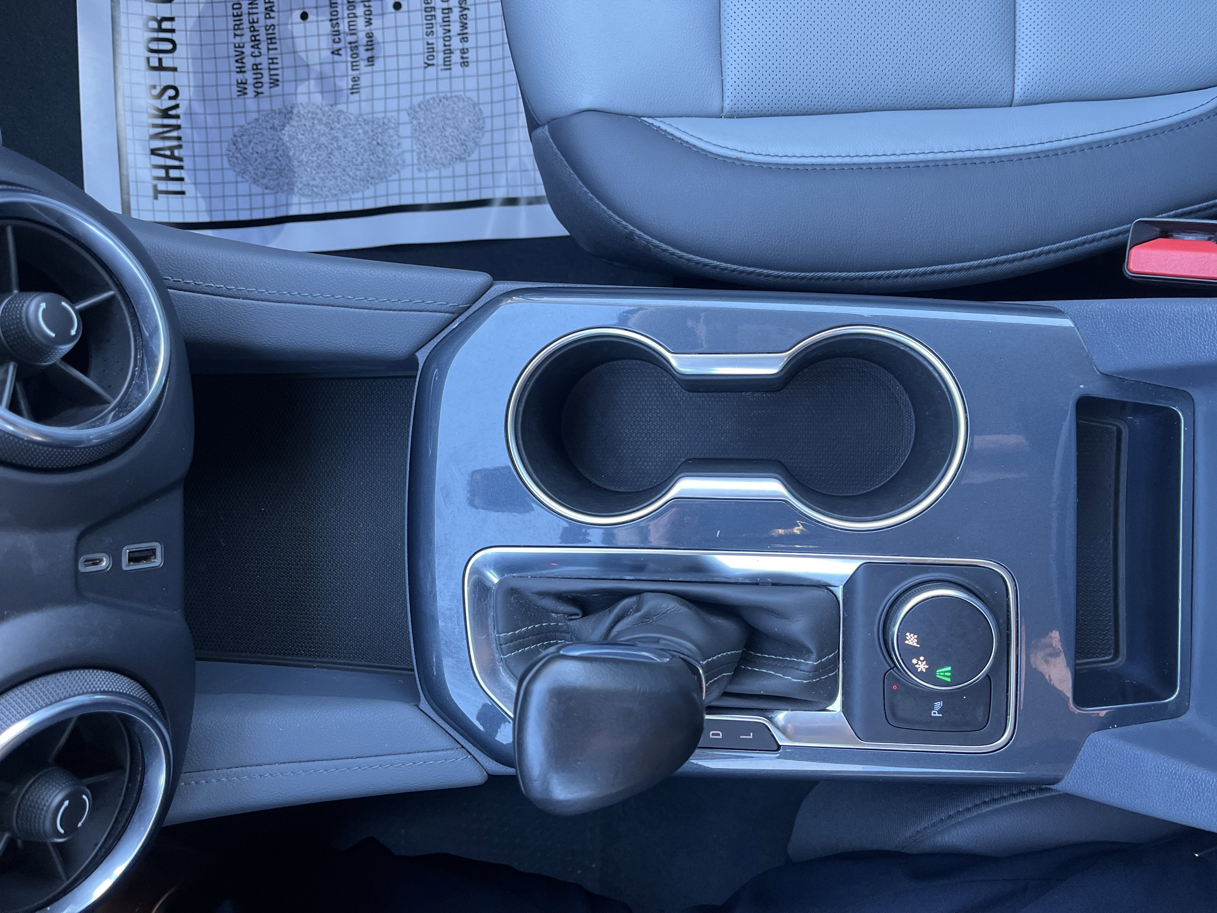 - USB charging-only ports 2, one type-A and one type- C, located on rear of center console
