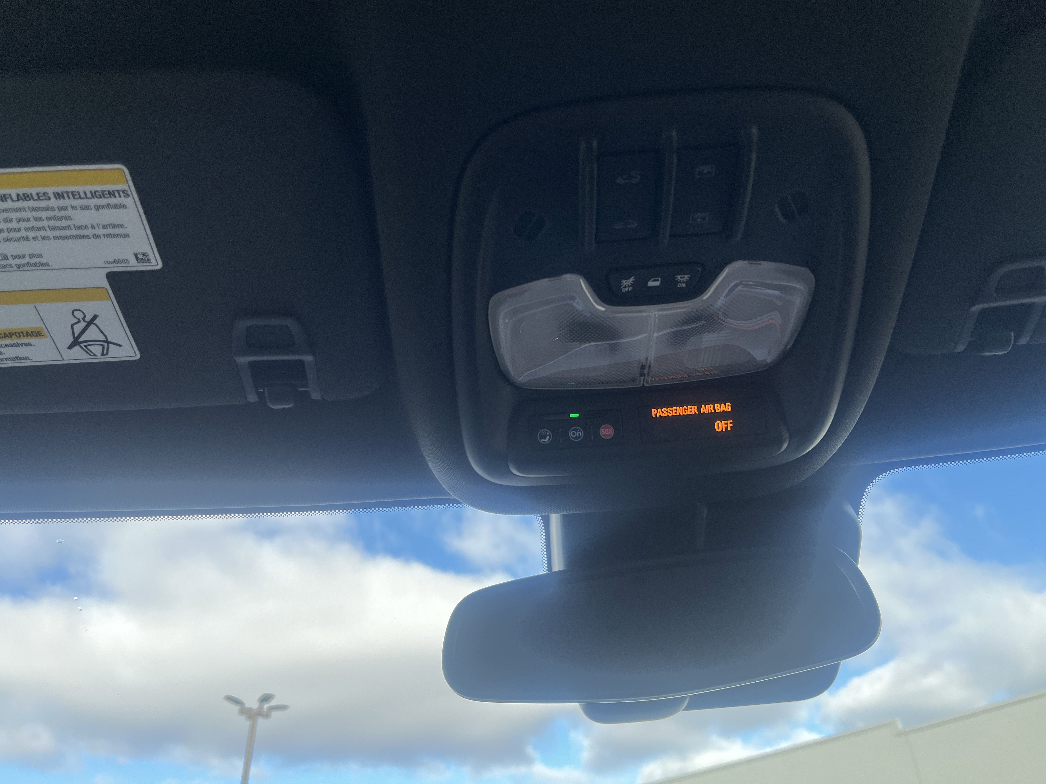 - Includes Passenger Sensing System which automatically switches the front passenger seat frontal airbag and knee airbag on or off and illuminates a status light that indicates whether the airbags are on or off1